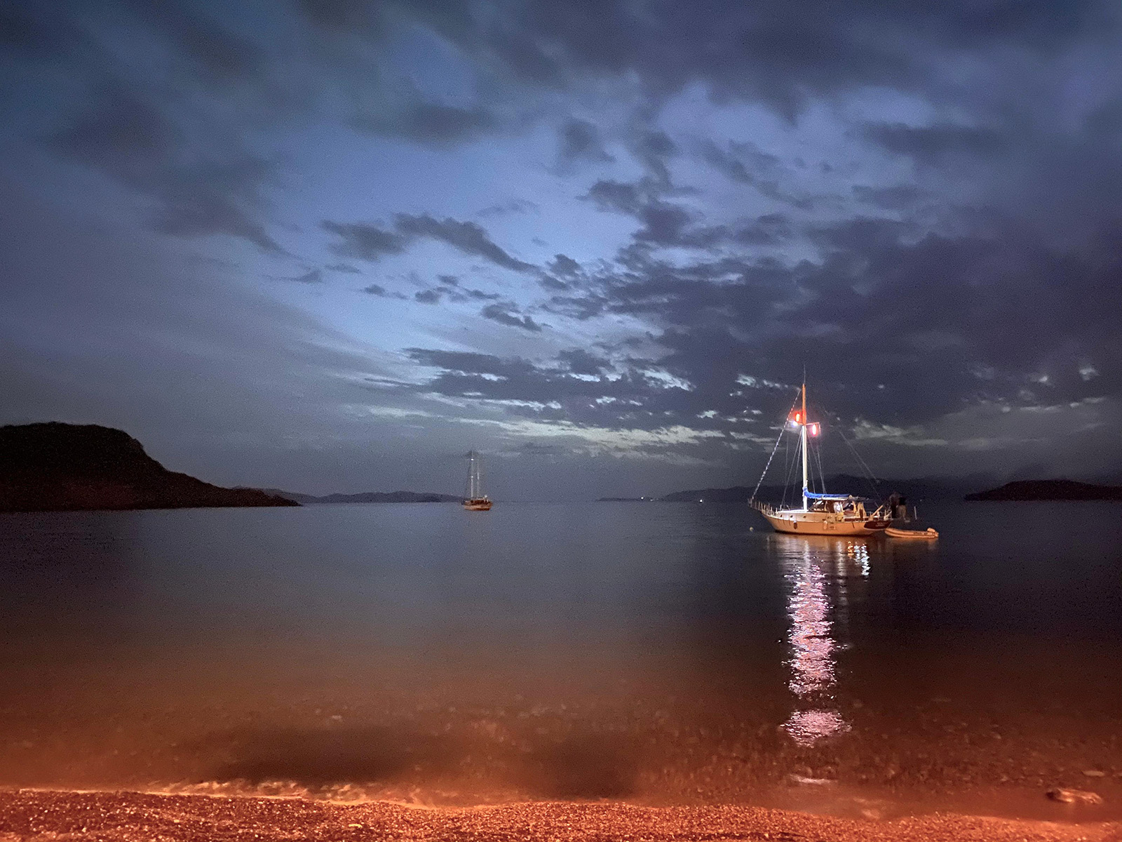Yelken açtığımız yer, Göcek. Denizle tanışıklığım vardı ama onunla yakınlığım, Göcek’te başladığımız o yolculukta şekillendi. Maviyle karışmış şarkıların arasında, motorun yerini rüzgârın, zamanın yerini dalgaların aldığı bir seyahate başladık. Göcek'ten çıkarken fonda çalan Ocean Drive, yolculukların sadece bir yere varmak değil, kendi başına bir deneyim olduğunu, sadece bir rota değil, bir ruh hali olduğunu bize hatırlatıyordu.
