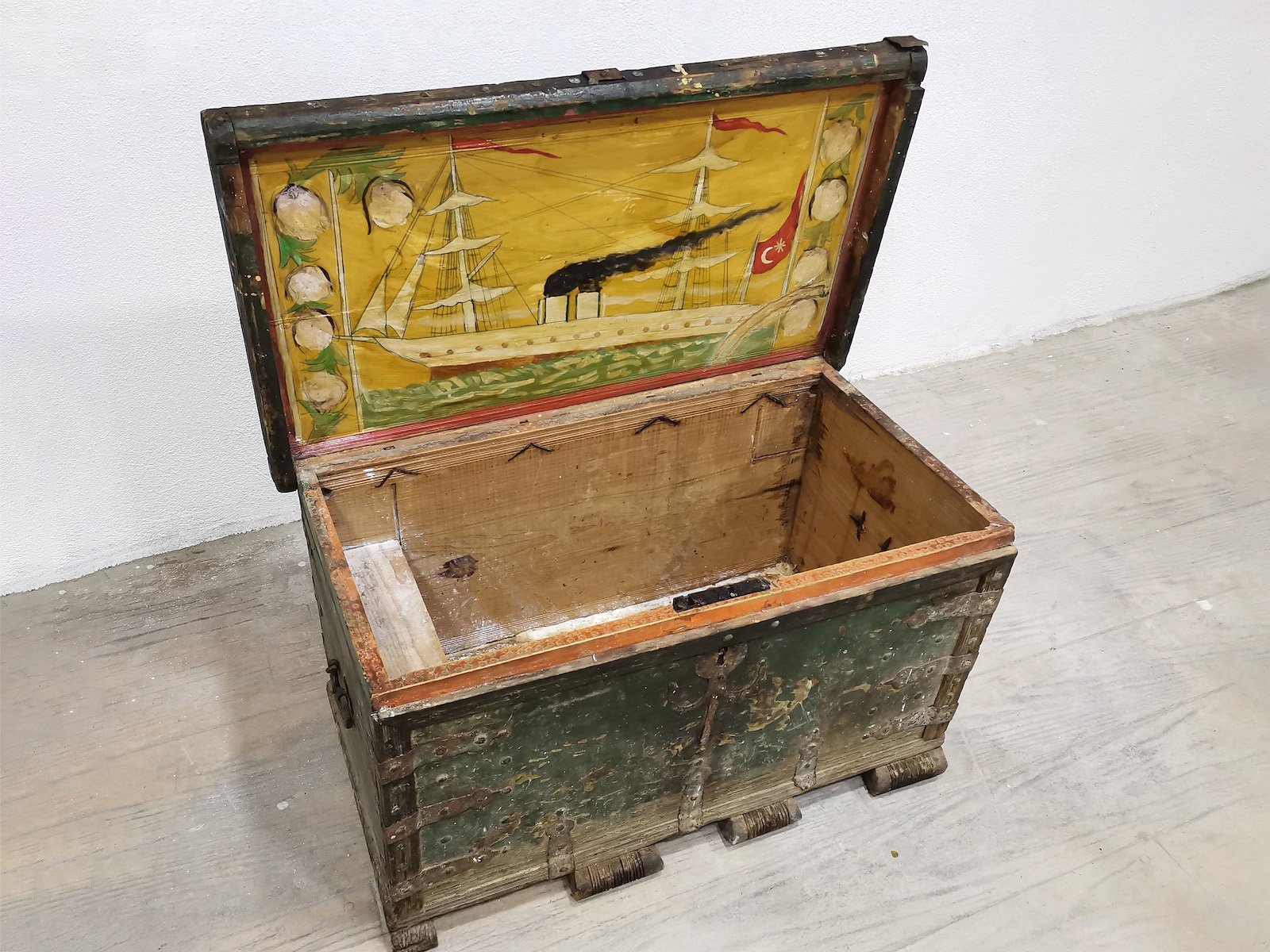 Çeyiz geleneği Türklerde İslam öncesine kadar uzanan bir gelenek. Çeyizin taşındığı sandıklar ise kendi başına bir estetik ve kültürel değere sahip. Genellikle ahşaptan oyulan sandıkların bazılarının kapak içlerinde gemi tasvirlerine rastlanıyor. Osmanlı’nın son dönemlerinden Cumhuriyet’in ilk yıllarına kadar tarihlenen bu tasvirler eski denizcilik kültürümüze dair çok şey anlatmakla kalmıyor, Osmanlı’dan Cumhuriyet’e geçiş sürecinin kültürel mirasının bir parçası olarak da dikkat çekiyorlar.